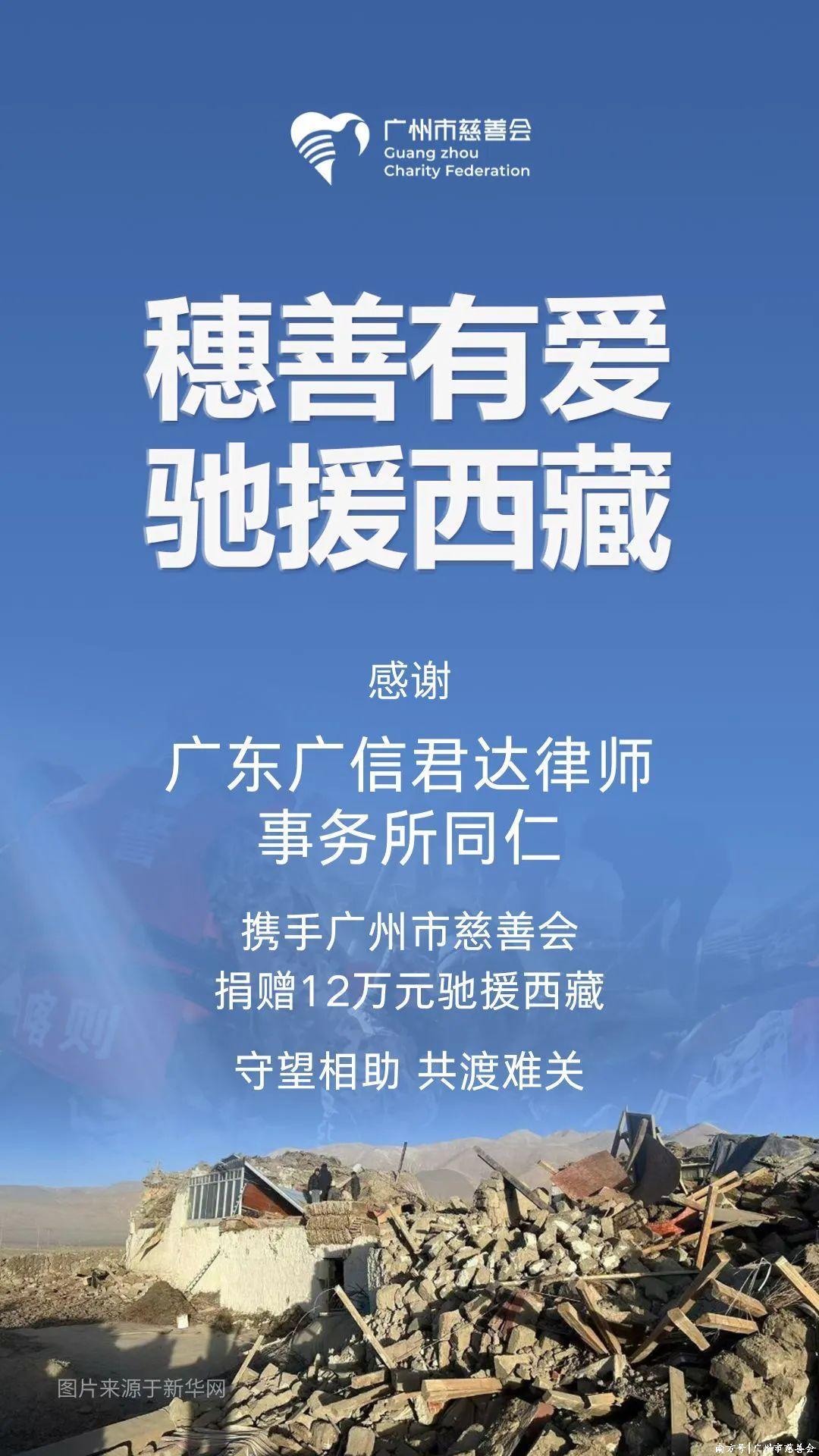 自西藏地震发生后,广信君达总分所结伴东谈主、讼师、职工奋勇捐钱,短短半天内筹集善款12万元,所党委及事务所,实时将上述善款转付至广州市慈善会,用于匡助西藏、青海地震灾地受灾家庭及灾地震后复原重建责任,为灾地全球冷静过冬尽少许菲薄之力。