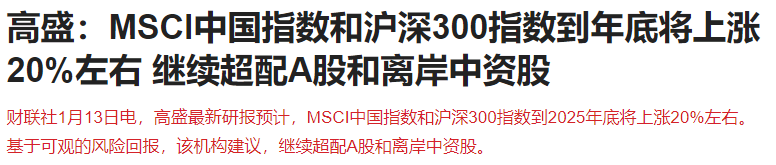 高盛:MSCI中国指数和沪深300指数到年底将高涨20%傍边 接续超配A股和离岸中资股。