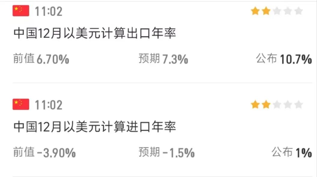 以好意思元计价,中国2024年12月出口同比增长10.7%,大幅超出商场预期的7.3%,入口同比增长1%,好于预期的-1.5%,交易顺差为1048.4亿好意思元。